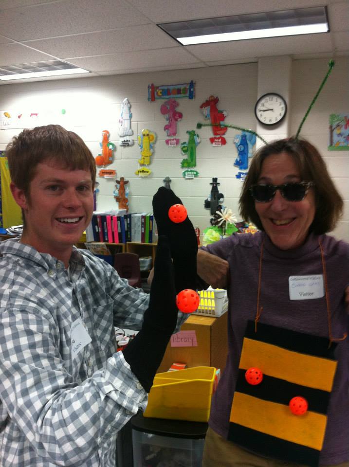 - Stamens are created by students pulling socks over their hands and holding their hands up with pollen sticking to them.
